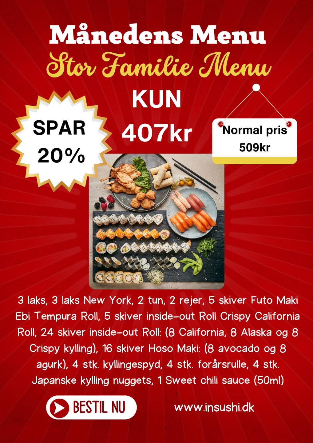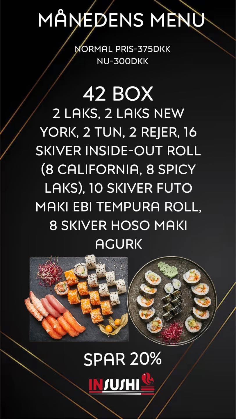In Sushi åbnede den 7. juli 2011. Vores mål er at forbedre os og optimere både kvalitet og service. Vi har fokus på det japanske køkken.